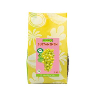 Herrlich saftig süsse Sultaninen aus dem Rapunzel Türkei-Projekt. Die hellen Trauben werden unter der türkischen Sonne getrocknet. Sultaninen werden vor dem Trocknen gedippt, dadurch verkürzt sich die Trocknungszeit und ihre helle Farbe bleibt erhalten. Die türkischen Sultaninen stammen aus dem Dorfprojekt Salihli. Anwendung Ins Müsli, für alle Süssspeisen, zum Backen und Naschen.