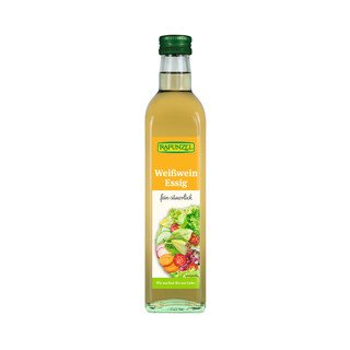Hochwertiger italienischer Weißwein verleiht diesem aromatischen Essig seinen Charakter.Sein fruchtiges Aroma mit einer frischen Weißweinnote eignet sich hervorragend zum Verfeinern von verschiedenen Speisen. Rapunzel Weißweinessig zeichnet sich durch seine Naturbelassenheit und schonende Herstellung aus. Er wird aus ungeschwefeltem Weißwein hergestellt, reift in Holzfässern und wird nicht erhitzt.