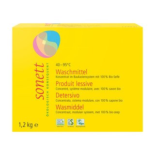 Baustein 1 im Sonett-Baukastensystem. Für alle Textilien aus Baumwolle, Leinen, Hanf und Mischgewebe. Das Sonett-Waschmittel enthält als Hauptwirkstoff reine Bio-Pflanzenölseife. Seife ist die der Natur und dem Menschen am nächsten liegende Waschsubstanz. Sie hat gegenüber allen anderen Tensiden die Fähigkeit, sich unmittelbar nach dem Gebrauch durch die Verbindung mit dem stets im Abwasser vorhandenen Kalk selbst zu entsorgen und wird danach leicht und vollständig abgebaut. Ohne Erdöltenside, ohne Enzyme (Gentechnik), duftfrei und vegan. Anwendung Ab mittlerer Wasserhärte, 14° französische Härte (df), zusätzlich Sonett Enthärter benutzen. Besonderheiten Das Baukastensystem mit seiner separaten Dosierung der drei Hauptbestandteile eines Waschmittels – waschaktive Substanzen, Enthärter und Bleichmittel – ermöglicht eine optimale Nutzung der einzelnen Stoffe entsprechend dem Verschmutzungsgrad der Kleidung, der Härte des Wassers und dem ganz individuellen Bedürfnis nach dem Weissgrad der Wäsche.