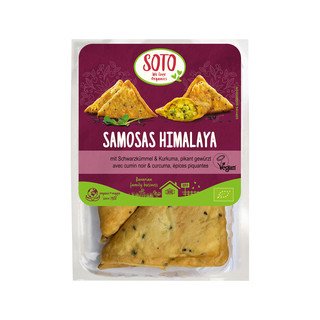 Die veganen Samosas Himalaya sind sowohl optisch als auch geschmacklich ein wahres Highlight. Die pikante Gewürzmischung nach traditionell-indischem Familienrezept verleiht den köstlich gefüllten Teigtaschen den typischen Geschmack Indiens. Schwarzkümmel im Teig sorgt für ihren besonderen Look.